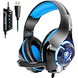 Amazon Com Sades Newest Sa902 7 1 Channel Virtual Surround Sound Usb Gaming Headset Over Ear Headphones With Noise Isolating Mic Led Light For Pc Mac Computer Gamers Black Blue Computers Accessories