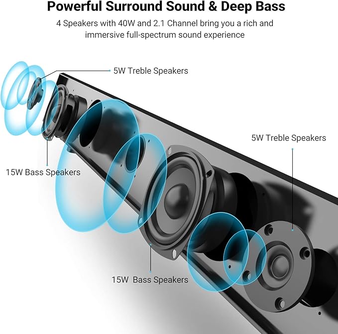 Amazon Com 2 1 Channel Sound Bar 2019 Updated Senngore 40w 36 Inch Tv Soundbar 4 Speakers Wired Bluetooth 4 2 Home Theater For Tv Pc Smartphone Deep Bass Surround Sound Dsp Remote Control Wall Mountable Electronics
