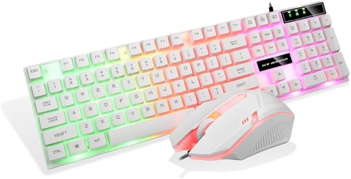 Amazon Com Baishitop Colorful Led Illuminated Backlit Usb Wired Pc Rainbow Gaming Keyboard Mouse Set White F Computers Accessories