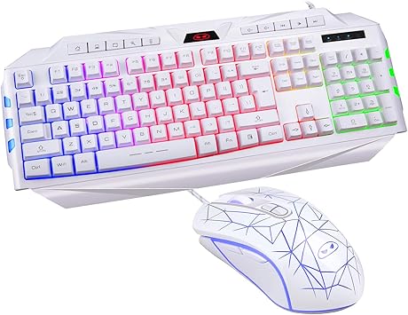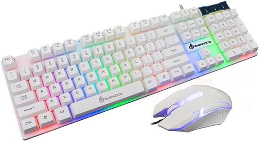 Amazon Com Chonchow Led Backlit Wired Gaming Keyboard And Mouse Combo Mechanical Feeling Rainbow Backlight Emitting Character 4800dpi Adjustable Usb Mice Compatible With Pc Resberry Pi Imac Tdw910 White Computers Accessories